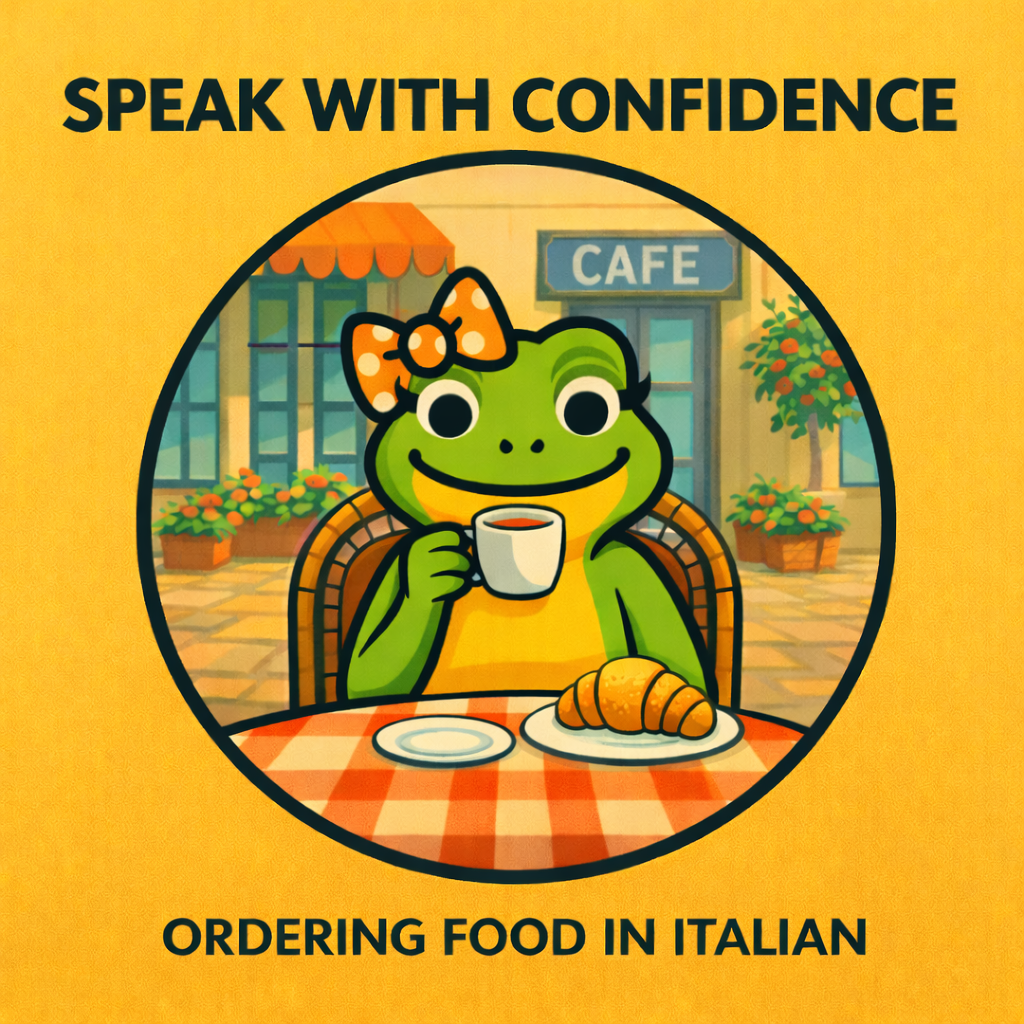 A beginner-friendly mini-course that helps you confidently order food and drinks in Italian using clear VIDEO instruction, AUDIO practice, and a concise PDF guide.